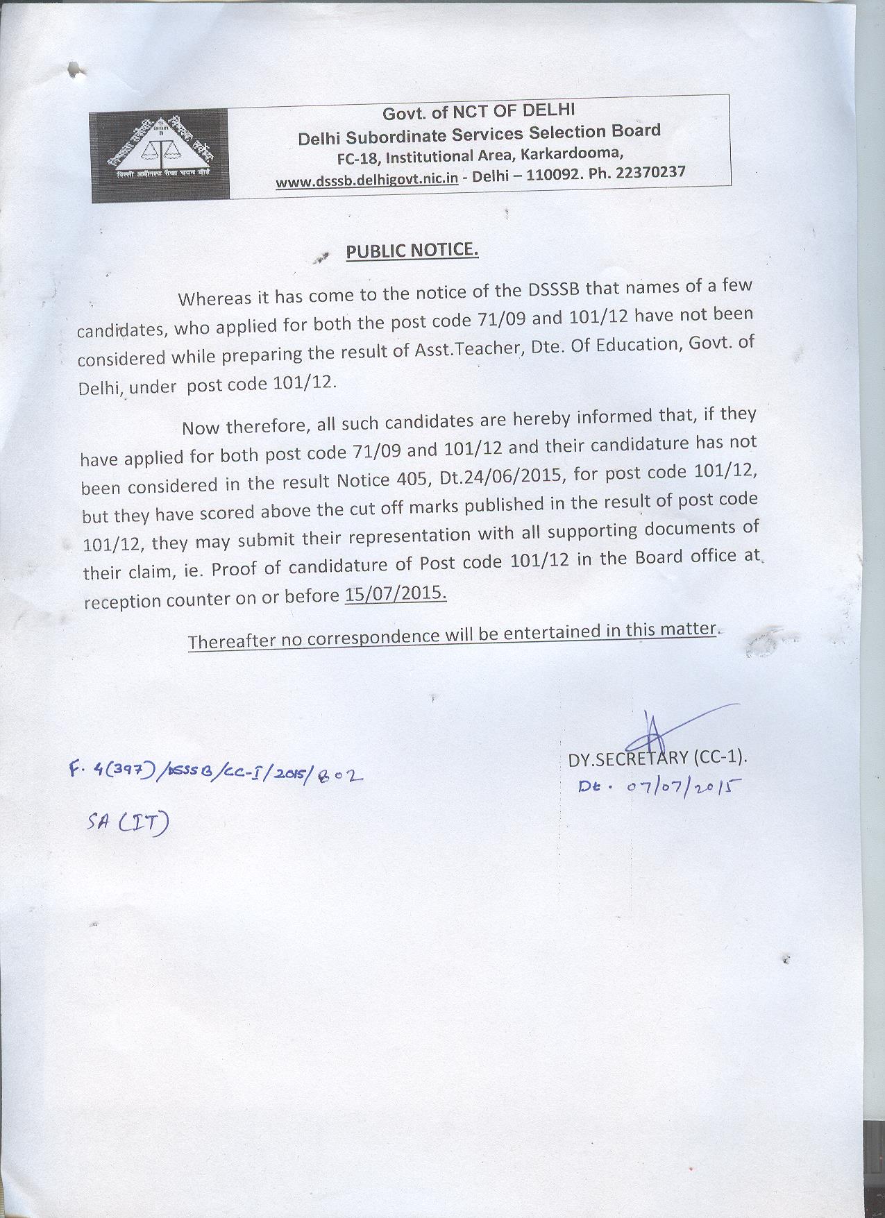 - DownloadPUBLIC NOTICE:KIND ATTENTION CANDIDATES FOR POSTCODES 71/09 & 101/12.Date: 19-09-2022 | 314.12 किलोबाइट