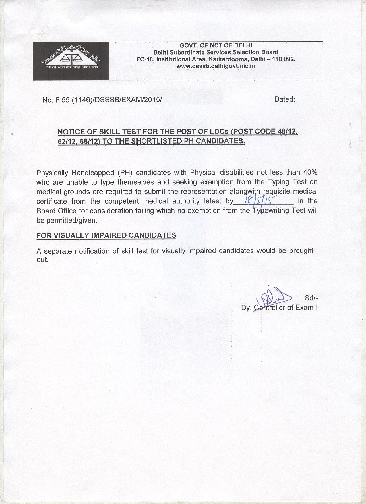 - NOTICE OF SKILL TEST FOR THE POST OF LDCs (POST CODE 48/12,52/12,68/12) TO THE SHORTLISTED PH CANDIDATES.Date: 19-09-2022 | 284.84 KB